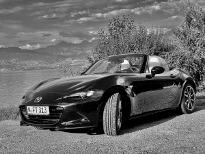 Ein Mazda MX-5 Roadster in glänzendem Dunkelblau mit 184 PS erlaubt den schnellen Transport der Fotoausrüstung auf engen und kurvenreichen Landstraßen. Liebevoll verbrannt wird dabei hauptsächlich Super E10. Allerdings ist es gelegentlich zwingend erforderlich, sich zu Fuß fortzubewegen. Dazu hat Herr Friedrich Hackner aus Hilpoltstein in Bayern persönlich Maßschuhwerk entworfen und von Hand angefertigt.