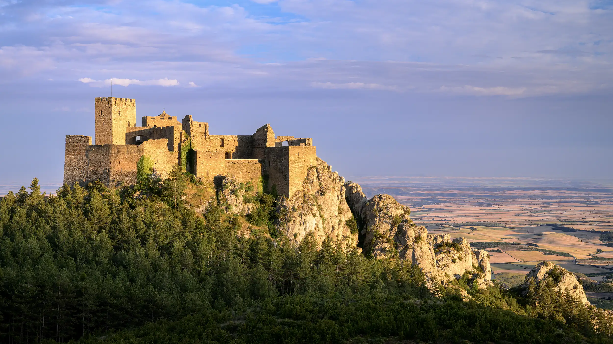 The Castillo de Loarre is considered the best-preserved Romanesque fortress in Europe. The castle was built for military purposes by King Sancho III the Great on the foundations of a Roman settlement called Calagurris Fibularia. In more modern times, it has been the setting for films and series such as Kingdom of Heaven (starring Orlando Bloom) and La noche oscura (by Carlos Saura).